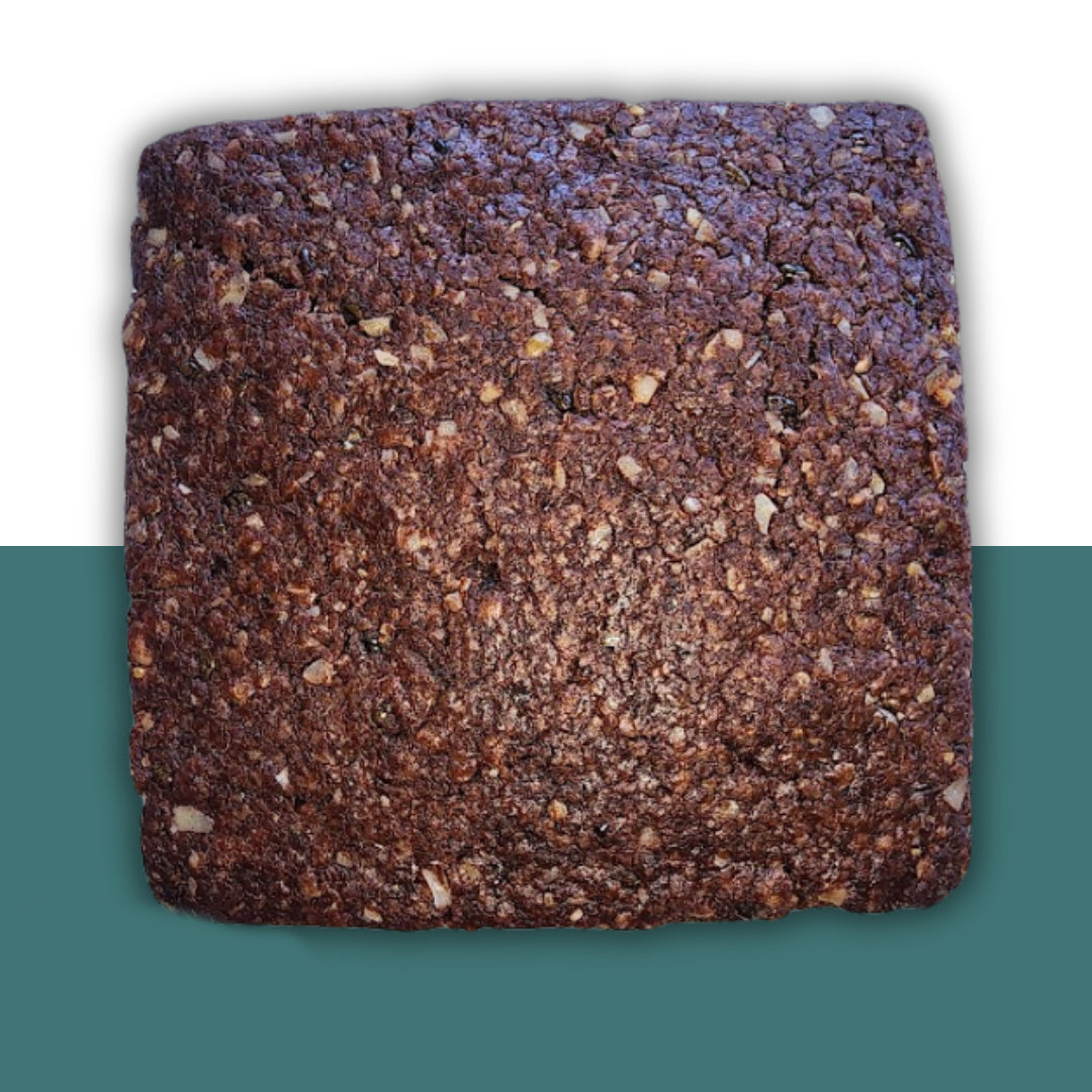 INGREDIENTS: OAT FLOUR, COCONUT OIL, COCONUT SUGAR, 100% DATES, COCOA, WATER, CHIA SEEDS, VANILLA EXTRACT, SALT, BAKING SODA